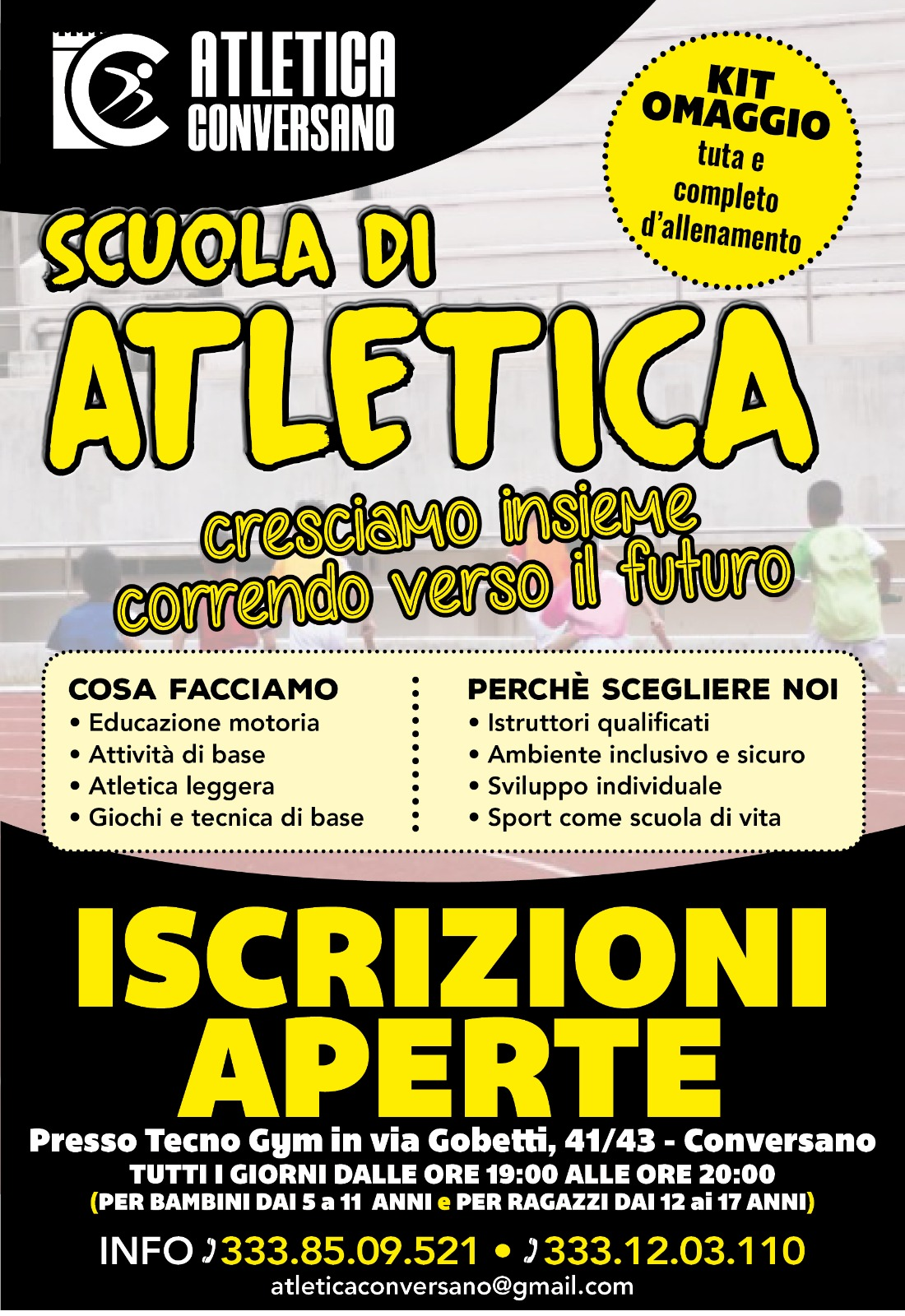Scegli ATLETICA CONVERSANO: non un corso, ma una SCUOLA DI VITA guidata da professionisti e campioni! Siamo pronti ad accoglierti!